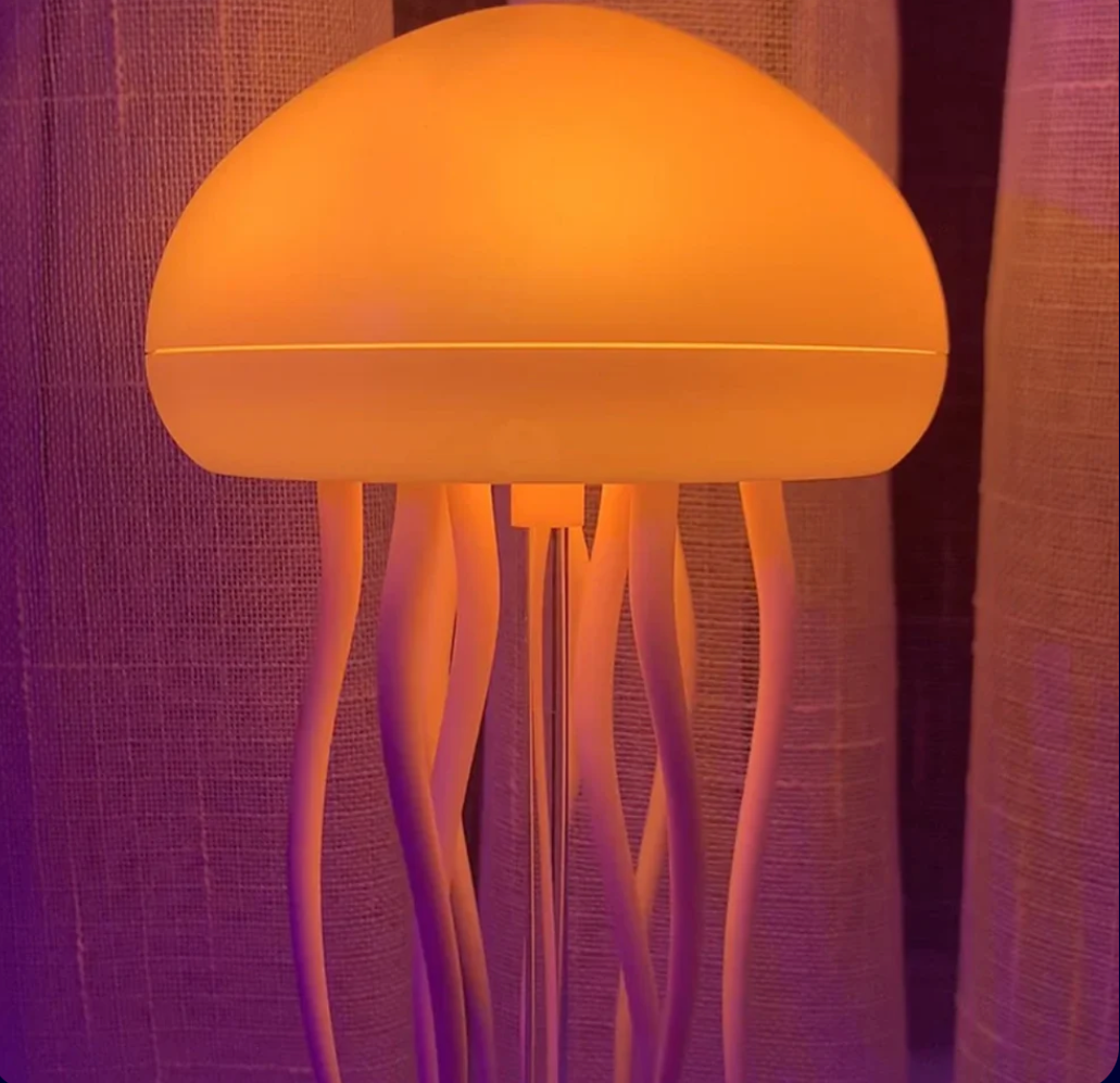 Each Jellyfish Lamp is handmade and features state of the art RGB gradient lighting that mimics the soothing effects found in the ocean. It is the perfect addition to your bedside table, nightstand, or on top of your dresser.